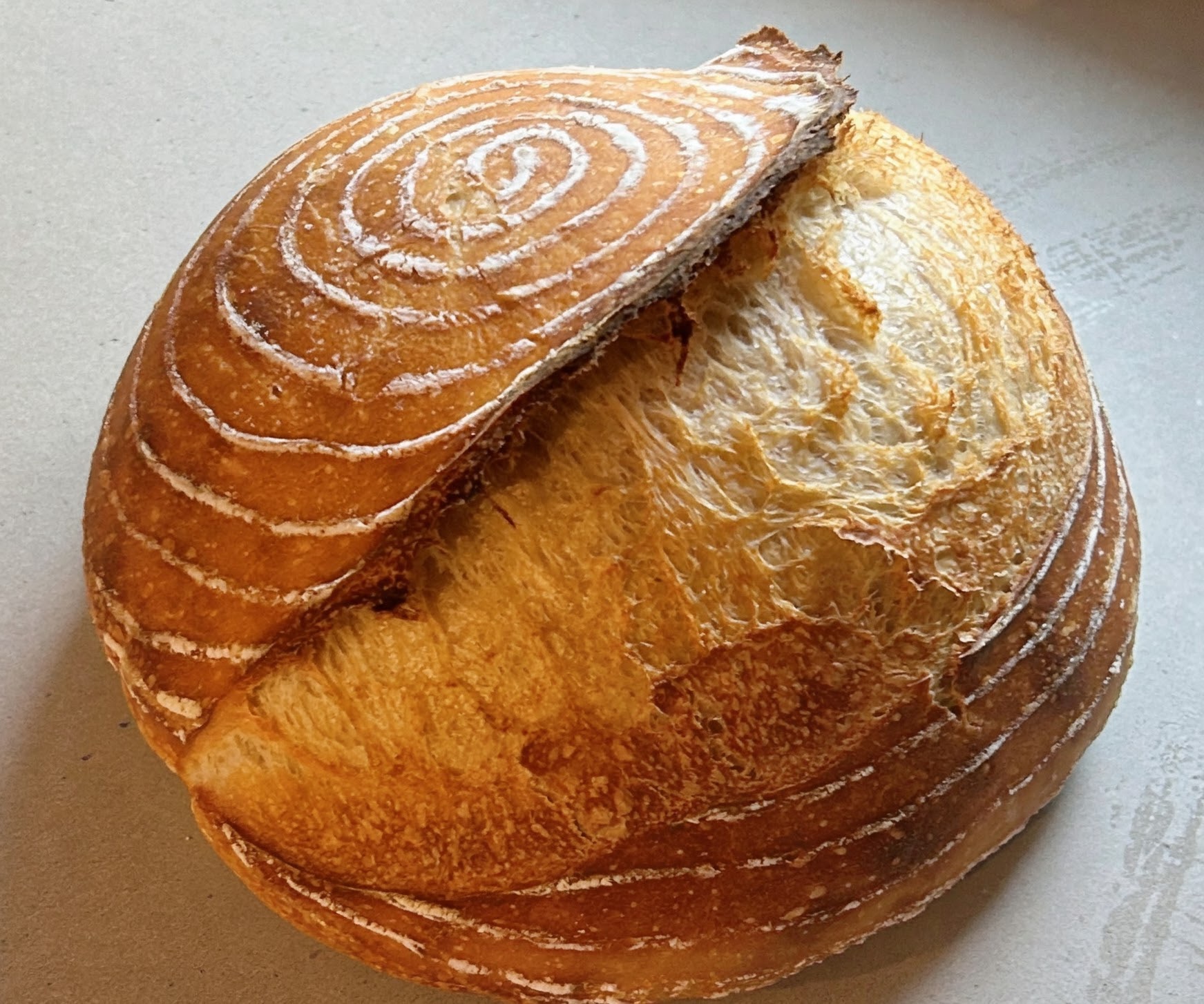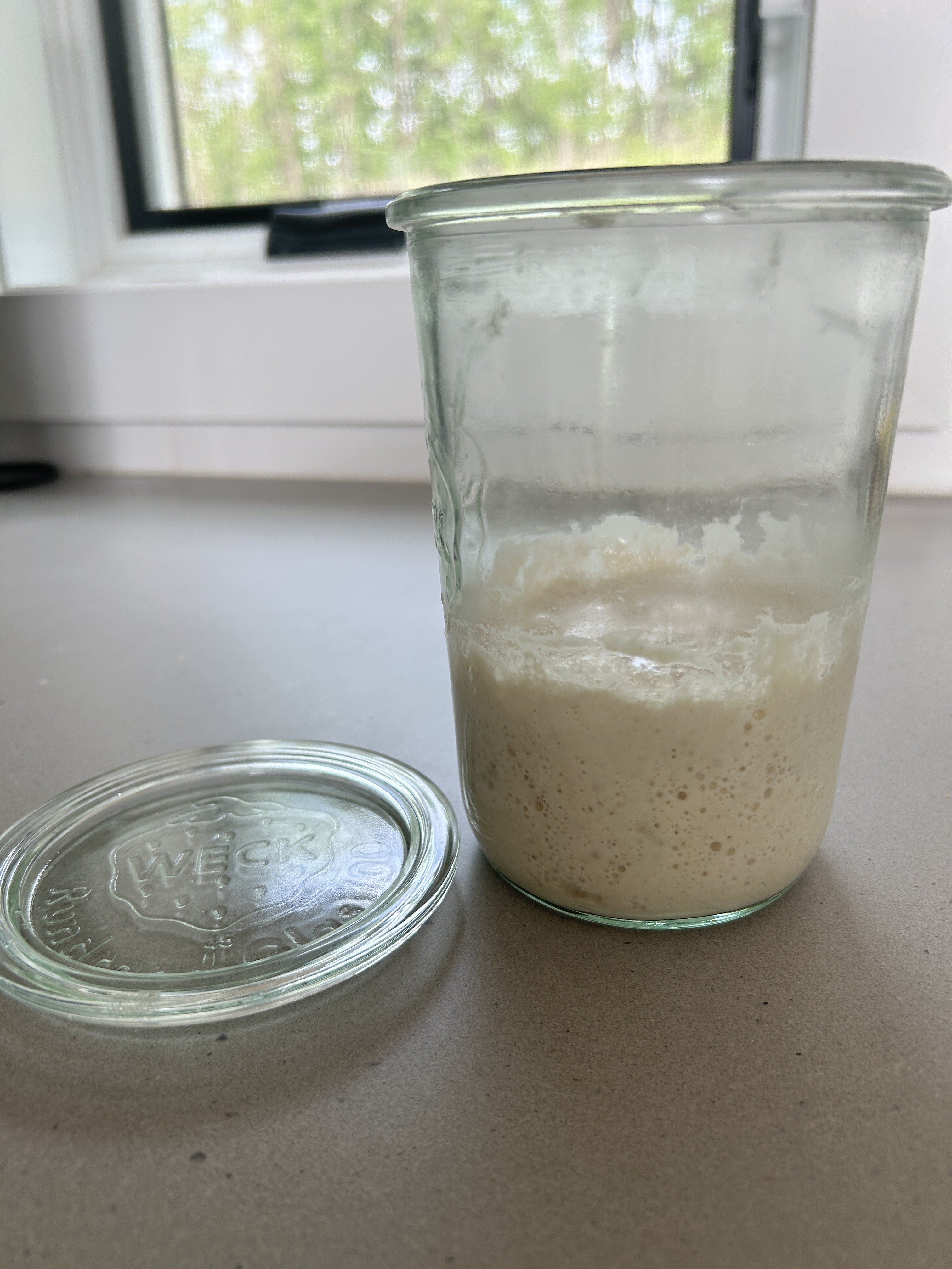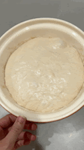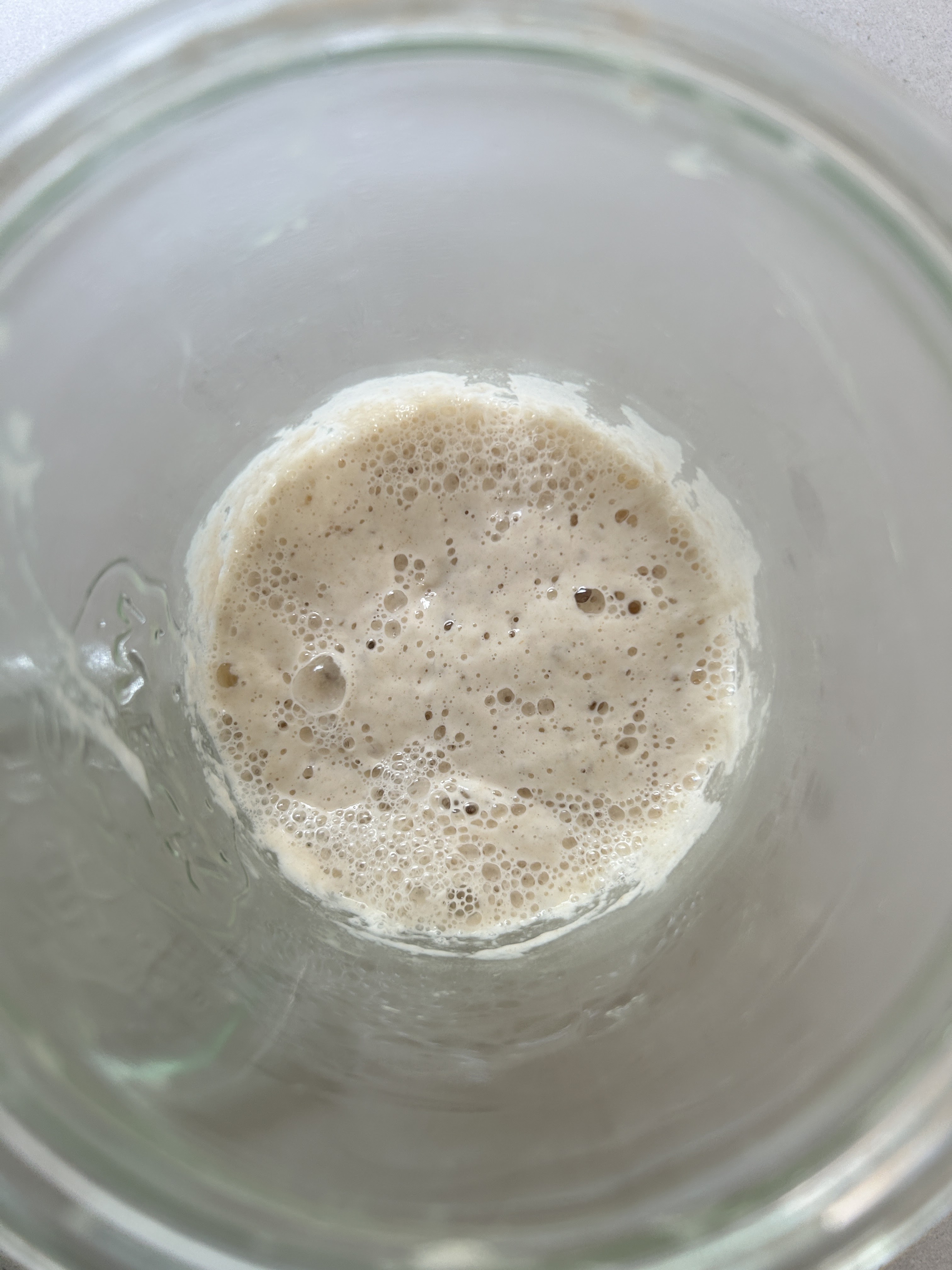 5. End of bulk ferment. When your dough has ‘doubled in size’ – before shaping and putting in the fridge for cold ferment. Dough should have a little bit of wiggle to it. This is the major indicator that it’s ready and will form a good crumb when baked. I have baked dough that was under proofed and it was like a brick. The ‘wiggle’ was the telltale sign that it proofed on the counter adequately:
